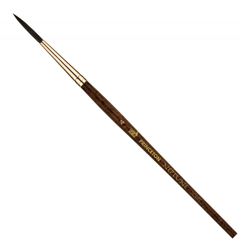 Able to outperform Kolinsky Sable brushes when it comes to water absorption, the Neptune Series 4750 Watercolor Brushes by Princeton Brush Company is made of synthetic squirrel hair. Refered to as today's thirstiest watercolor brush, the Neptune Series of artist's brushes has been developed with synthetic fibers that are designed to feel smooth like natural squirrel hair and surpass other brush's water hold.