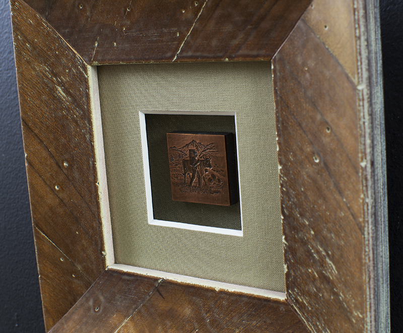Small cow in wood frame