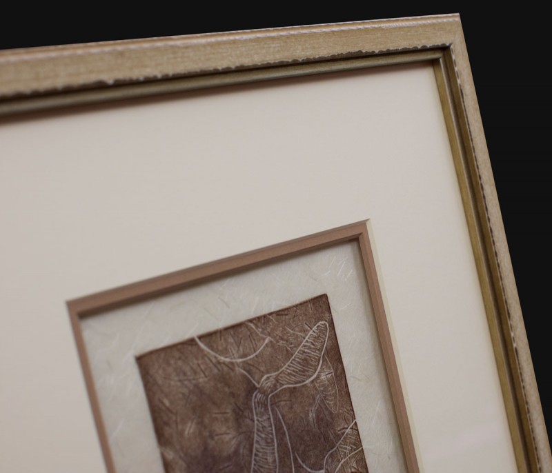 This unique print is in a stunning gold toned wooden frame. The colors of the frame complement the tone of the print, keeping the theme alive throughout this artwork.
